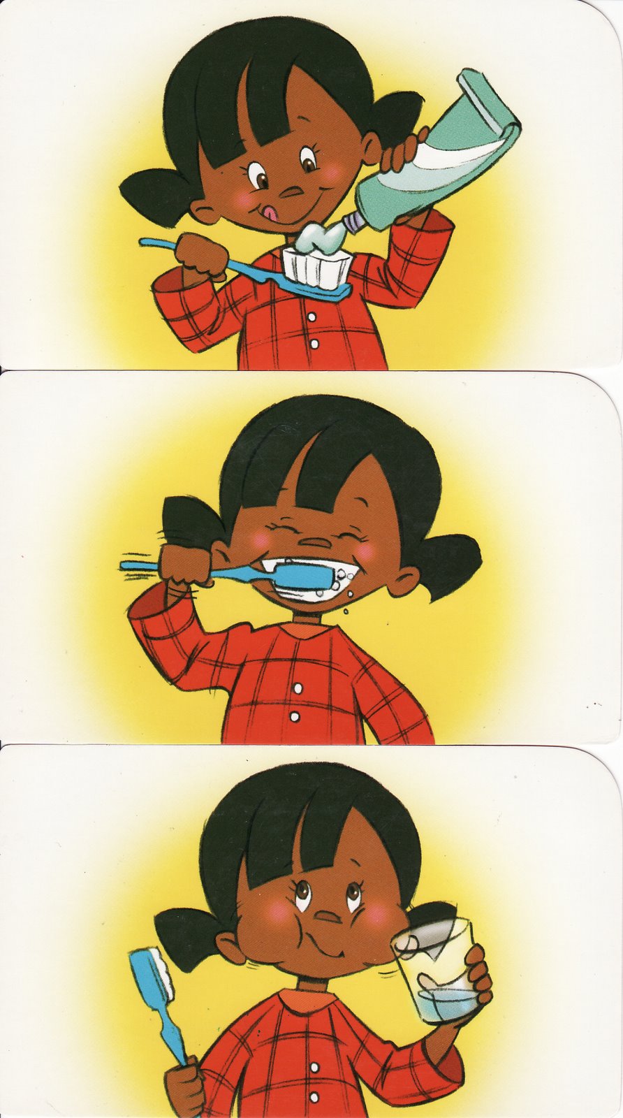 Si no puede al principio de forma espontánea, se le va guiando con preguntas (por ejemplo, en la serie “lavarse los dientes”: