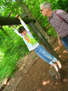 Colgarse de las barras es una meta que está en nuestra lista entra en pánico si no siente sus pies en el suelo. Son ejercicios muy divertidos si se hacen en un parque y con muchas risas. Un abrazo Anabel.