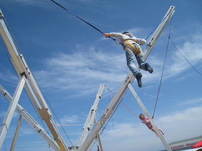 Es curioso, pero Erik dice que “mi mejor momento en la vida es” cuando trepa con arneses por paredes o cuando salta en trampolines gigantes ajustado con arneses también. Incluso durante un tiempo nos comentaba que “cuando vuelva a nacer, quiero ser un caballo”; ahora ha cambiado de idea, y quiere ser uno de esos gansos salvajes que pueden sobrevolar el Everest “porque vuelan a más de 8.000 metros de altura”. Eso sí, conmigo siempre de mamá, jajaa, ya me veo poniendo huevitos.