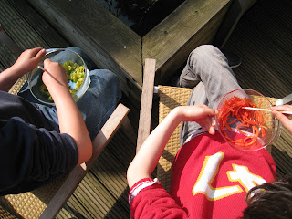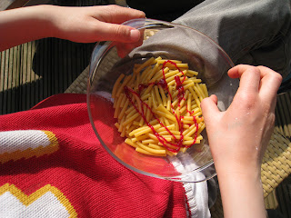 sobre la mesa de la cocina. Con palitos, coches o piezas de lego también