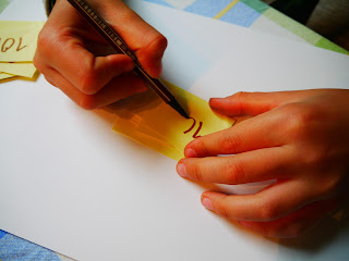 Hace poco encontré este juego para practicar Absorber en el blog El hada de papel, y me encantó. Así que lo pusimos en práctica en el grupo de juego.